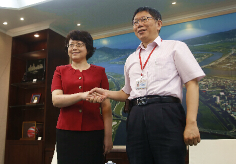 7月30日,上海市副市长翁铁慧(图左)与台北市长柯文哲(图右)在台北会面。