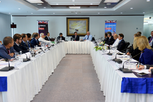 7月30日,英国首相卡梅伦(中)在越南胡志明市参加一个商业论坛。