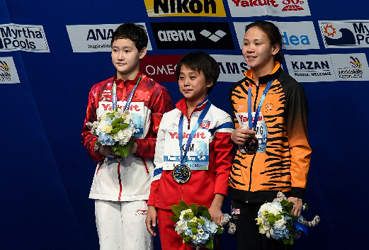 当日,在俄罗斯喀山进行的第16届游泳世锦赛跳水女子十米台决赛中,朝鲜选手金国香以397.05分的成绩获得金牌。