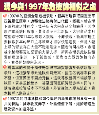 美元的漲勢,讓匯市老手餘悸猶存。美元在1980年代初期的漲勢,引發了拉丁美洲的債務危機。15年后,美元再度快速上漲,使得東南亞經濟體:如泰國,出現了銀行擠兌,經濟幾乎崩潰。更值得注意的是,今日世界的牽連程度遠高於上世紀80與90年代。換言之,中國股市重挫,可能只是新興市場災難的開始。