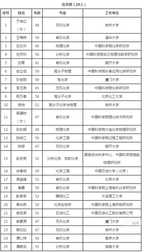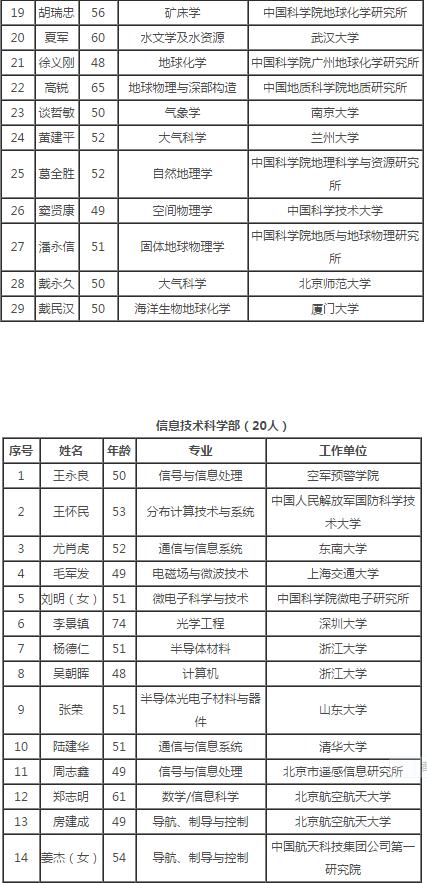 中科院院士增選每兩年進行一次,2015年將最終增選院士不超過65名。此次公布的157名初步候選人中,數學物理學部23人、化學部25人、生命科學和醫學學部30人、地學部29人、信息技術科學部20人、技術科學部30人。其中年齡最大的74歲,年齡最小的43歲。