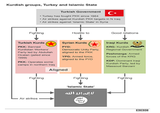 庫爾德、土耳其、伊斯蘭國關系。來源:BBC
