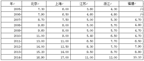 表4:小時最低工資標準(單位:元) 數據來源:wind數據庫
