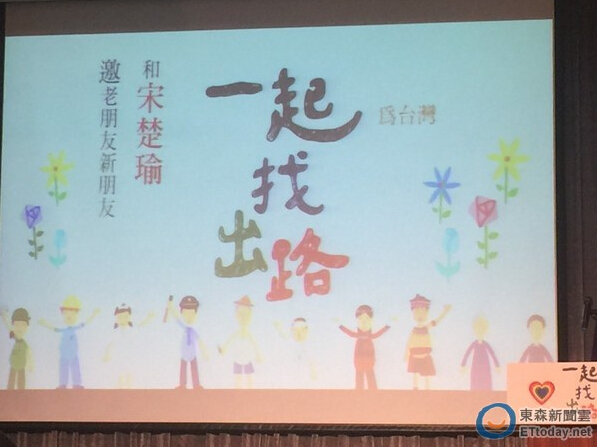 宋楚瑜参选声明以“跨出这一步、一起找出路”为主题,要求联合政府,务实执政。