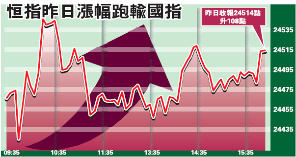 展望后市,港股下行趨勢明顯,指數表現受10天移動平均線壓制,加上成交偏弱,恒指或有機會下試上周低位24217點。