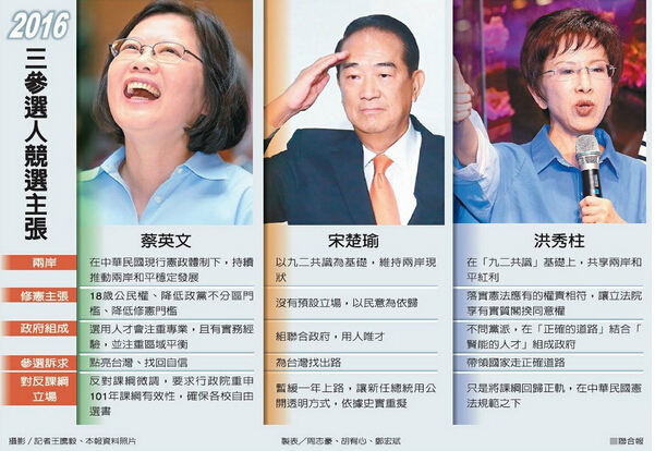 蔡英文、宋楚瑜、洪秀柱。圖/聯合報提供