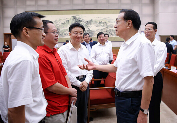 2014年7月15日,李克強總理主持召開座談會,就當前經濟形勢和經濟工作聽取專家學者的意見建議。中新社劉震攝