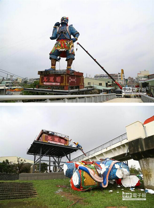 臺千里眼神像被臺風吹倒 當地無奈推倒順風耳