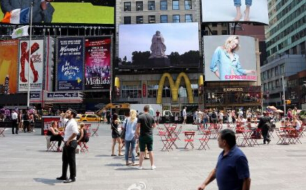 一則以河南形象為主題的宣傳片出現在紐約時代廣場的大屏上,被游客迅速撲捉并上傳網絡。