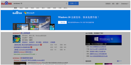 1)百度將和另外兩家升級戰略合作夥伴360、騰訊一起,提供Windows 10的更新下載。和後兩者使用自己渠道提供和原版稍有區別的安裝文件不同,當用戶在百度搜索Windows 10的關鍵詞時,會直接彈出合作頁面,百度和微軟會在該頁面上直接提供“官方純淨版”Windows 10下載。