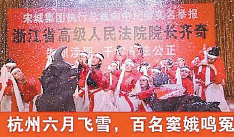 11日下午,許多人的微博都被一條「行為藝術」的內容刷了屏:以打造主題公園而聞名的浙江宋城集團,編排了一出「杭州六月飛雪、百名竇娥鳴冤」的舞臺劇,實名舉報浙江省高級法院院長齊奇失職瀆職,干擾司法公正。如此「獨具匠心」又不失「專業」的舉報方式,在迅速掀起輿論發酵的同時,也不禁引發了許多網友的戲謔:如今連舉報的方式都這麼「高大上」,以后的舉報豈不都得變成創意的大比拼?