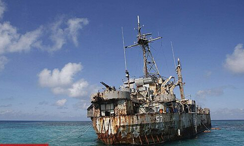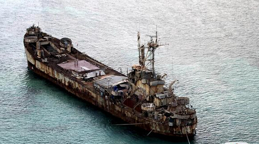 菲律賓把坐灘仁愛礁的廢舊兩棲登陸艦“謝拉·馬德雷”號作為在南海對抗中國的“橋頭堡”。