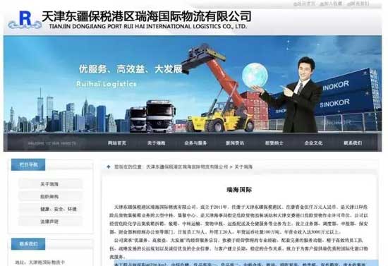 據天津東疆保稅港區瑞海國際物流有限公司官網介紹,該公司成立于2011年,是天津口岸危險品貨物集裝箱業務的大型中轉、集散中心,是天津海事局指定危險貨物監裝場站和天津交委港口危險貨物作業許可單位。
