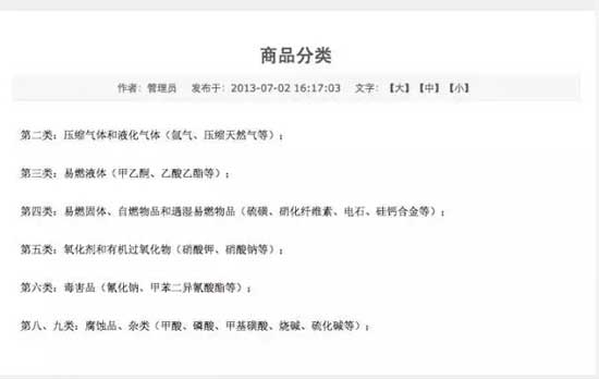 據該公司官網顯示,該公司倉儲業務的商品類別有:第二類:壓縮氣體和液化氣體(氬氣、壓縮天然氣等);第三類:易燃液體(甲乙酮、乙酸乙酯等);第四類:易燃固體、自燃物品和遇濕易燃物品(硫磺、硝化纖維素、電石、硅鈣合金等);第五類:氧化劑和有機過氧化物(硝酸鉀、硝酸鈉等);第六類:毒害品(氰化鈉、甲苯二異氰酸酯等);第八、九類:腐蝕品、雜類(甲酸、磷酸、甲基磺酸、燒堿、硫化堿等)。