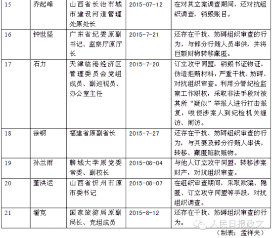 中紀委今年通報21名對抗組織調查干部一覽表