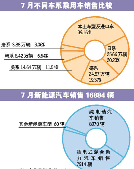7月乘用車完成銷量126.86萬輛,繼6月份后再次低于上年水平,同比上月大降16.1%。除SUV外,其余車型均低于上年同期,其中轎車下降二成左右。1~7月,乘用車完成銷量1136.42萬輛,比上年同期增長3.4%,增幅回落8.6個百分點。SUV是車市唯一亮點,繼續保持高速增長,1~7月銷量同比增長44.3%。