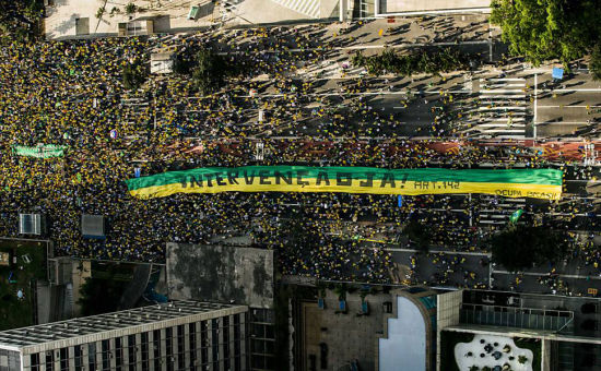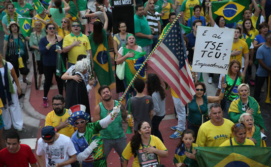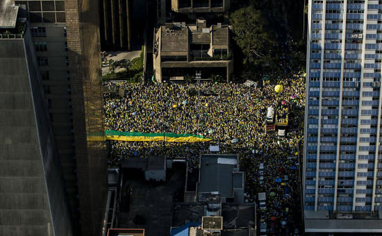游行者走上了里約熱內盧著名的科帕卡瓦納海灘,另外還在人在首都議會外抗議示威。很多游行群眾穿上了巴西足球隊的黃色球衫,高唱國歌,手舉的橫幅上寫著“迪爾瑪下臺”。