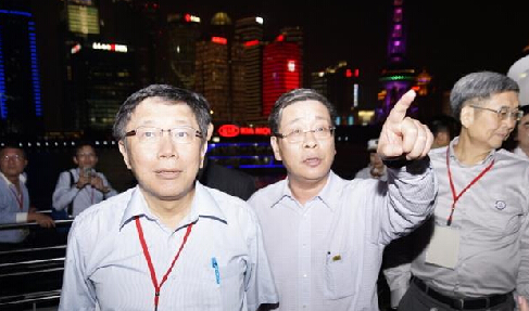 上海市臺辦主任李文輝(右)陪同柯文哲夜游黃埔江。(中評社黃文杰攝)