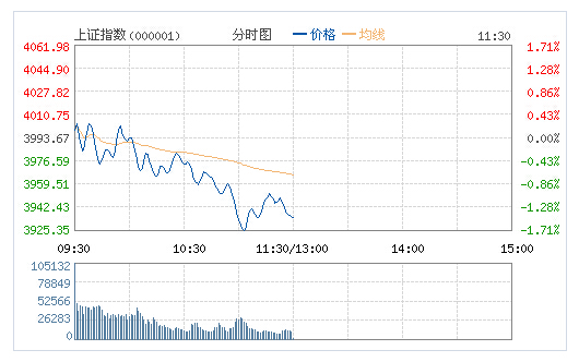 截至午间收盘,沪指跌1.46%报3935.33点;深成指跌1.14%报13419.18点。