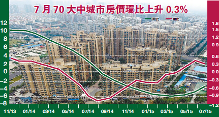 按照易居房地產研究院的監測數據,70城房價在5月份順利完成止跌反彈的過程,終結了此前12個月環比下跌的態勢。劉建偉指出,從漲幅看,7月份70個大中城市新建商品住宅價格環比綜合平均漲幅比上月回落0.2個百分點。分城市看,一線城市房價環比全部上漲且漲幅仍然較高,絕大部分二線城市房價環比上漲但漲幅低於一線城市,大部分三線城市房價環比仍然下降。
