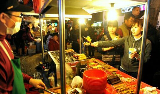 資料圖:通過自由行來到臺灣的大陸女孩正在臺北士林夜市品嘗美食。中新社發 王東明 攝