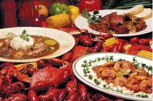 在欧洲殖民者来到路易斯安那之前呢,这里的原住民就已经开始广泛的食用小龙虾了。后来,流淌着法兰西热爱美食的血液的阿卡迪亚人(Acadiens)将自己的文化和烹饪技法带到了这里,利用当地丰富的食材,以法餐为基础又和聚居在这个地区的意大利人,西班牙人,墨西哥人,印第安人,非洲农奴的饮食文化相互融合,碰撞出了无比美妙多元的饮食菜系——著名的美国中南部菜系卡疆菜“Cajun food”(Cajun这个词也是源于法语“les Acadiens”)。话说,卡疆菜除了我们常见的海鲜、香肠肉丸、烤鸡烤兔之外,主打菜就是各式各样的小龙虾!