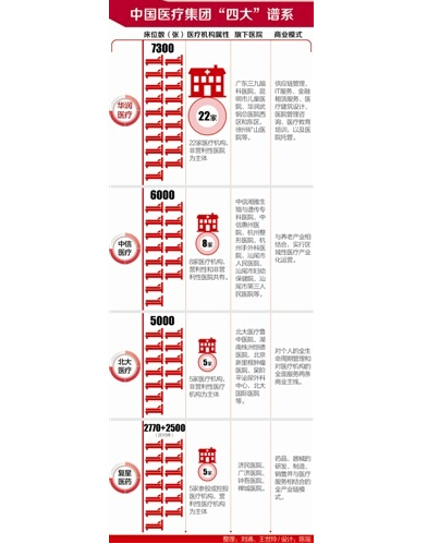 所謂“四大”,是對華潤醫療集團(以下稱“華潤醫療”)、中信醫療健康產業集團(以下稱“中信醫療”)、北大[微博]醫療產業集團(以下稱“北大醫療”)以及上海復星醫藥集團(以下稱“復星醫藥”)的統稱。
