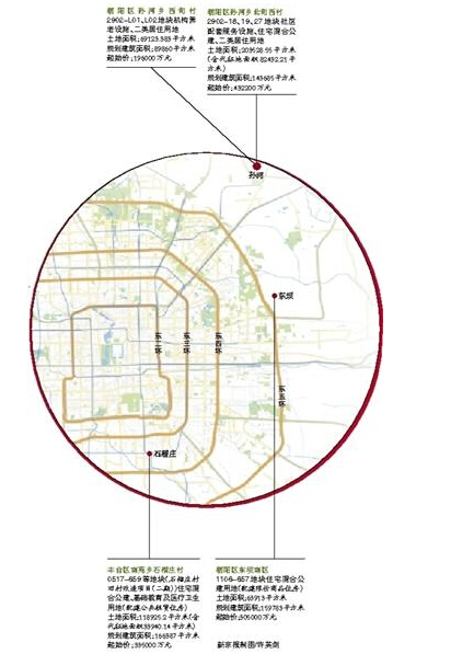 新一輪的搶地大戰即將一觸即發。在歷經了再一次的土地供應干涸期后,7月底以來,連續多宗經營性用地在北京市國土局網站掛牌出讓。截至8月19日,共有5宗地塊處于掛牌公示期,其中除1宗商業地塊外,其他4宗均為住宅用地。值得一提的是,這四宗宅地位于當前北京樓市的熱點區域及主城區,包括朝陽的東壩、孫河以及豐臺的石榴莊。8月底開始,它們將陸續出讓。