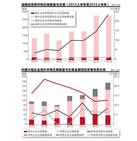 根據普華永道的統計,受益于股市暴漲、行業整合以及國有企業改制等因素,2015年上半年中國地區企業并購交易活動創歷史新高。境內投資并購金額增長高達60%,持續推動中國地區并購交易總額的增長。私募股權基金投資增勢十分強勁,交易金額增長達62%。并購交易數量共計4559起,環比增長10%,打破2014年下半年所創歷史最高半年紀錄。
