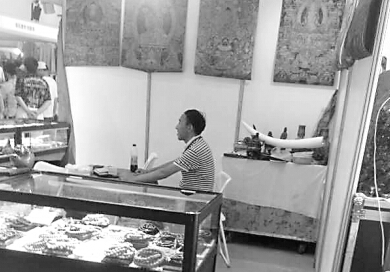 昨天下午,記者在武漢國際會展中心看到,展會上一處出售珠串、項鏈等飾品的展臺內,擺著一根將近1米長的“象牙”。這根“象牙”整體呈乳白色,看起來十分精美。展臺內有一男一女正在向往來顧客推銷。