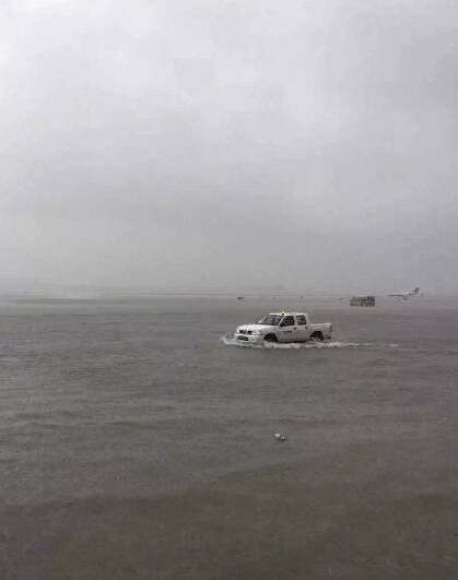 虹桥机场停机坪等区域也有数厘米深的积水。