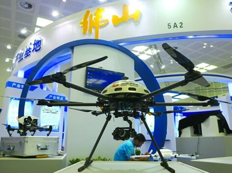 “裝洽會”佛山館展示的無人機。 歐陽少偉 攝