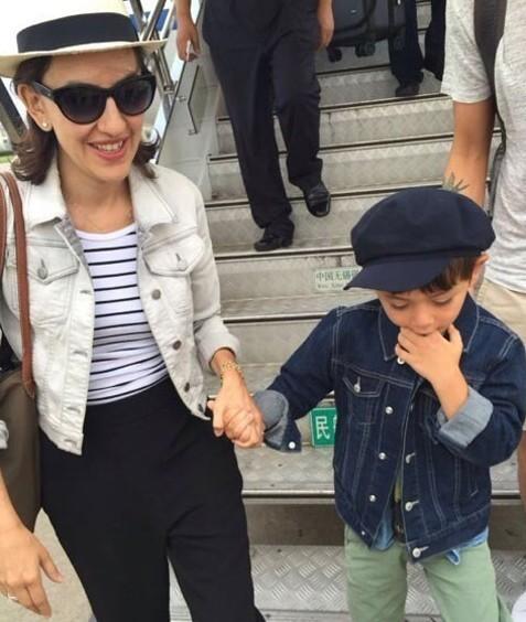 刘烨妻子紧牵爱子出行 诺一酷帅忙吃手指