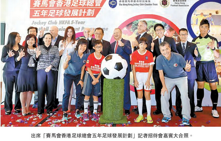 應家柏說,過去十年,馬會已投入逾3.66億元於足球項目,除了捐助硬件例如興建位於石門的「賽馬會傑志中心」及支持南華體育會重建觀眾席和球場;亦與曼聯合作推出嶄新的足球訓練項目,及支持舉辦全港運動會和其中的五人足球比賽。