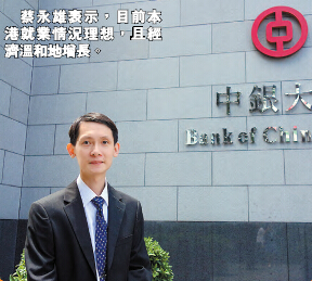 他又表示,目前本港就業情況理想,而且本港經濟溫和地增長,故未對樓市影響正面。至於政府政策,他說,政府剛於2月底收緊700萬元以下物業按揭至六成,未必會再推出收緊按揭措施,而且亦很難再推出新的稅項措施,因先前所推出的印花稅措施需要長時間才可獲立法會通過,難度較高。有見息口走勢不明朗,政府會觀察未來加息後對樓市所產生的實質影響後,才決定推行那些政策。
