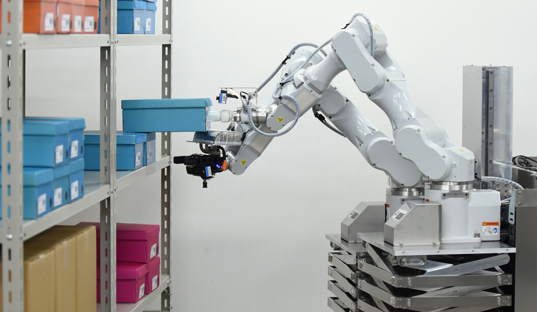 這款由日立公司開發的機器人具備定點移動、從貨架取貨和將貨物裝箱的功能。