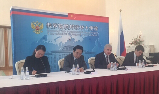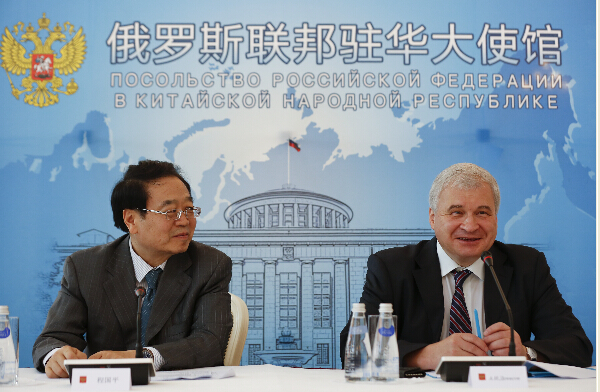 俄羅斯駐華大使杰尼索夫與中國外交部副部長程國平召開聯合記者發布會