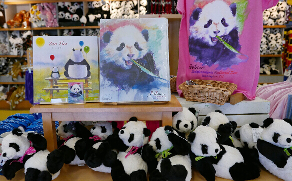 旅美熊猫“美香”一只幼崽不幸夭折这是8月27日在美国华盛顿国家动物园的纪念品商店里拍摄的熊猫造型的商品。