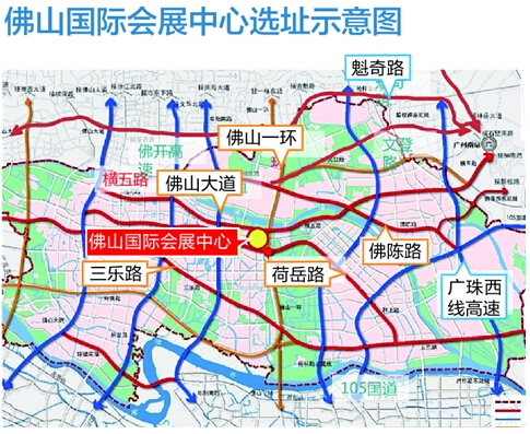 佛山國際會展中心選址于順德區北滘上僚,位于佛山新城與北滘新城之間、潭州水道以南、佛山一環以西、荷岳路以北,交通區位十分優越,地處廣佛軌道交通樞紐密集地,毗鄰廣佛環線北滘站,緊鄰佛山地鐵3號線上僚站,可快速到達廣州南站等區域性交通樞紐以及佛山中心城區和順德城區。