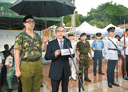 【香港商報網訊】實習記者王嘉豪報道:為紀念中國人民抗日戰爭勝利70周年,本港14隊青少年制服團隊聯同部分退伍軍人機構,昨早在尖沙咀舉行紀念巡遊,並邀得民政事務局局長劉江華主持起步禮,保安局局長黎棟國則擔任檢閱巡遊隊伍的嘉賓。劉江華致辭時,鼓勵青少年要好好了解抗日戰爭歷史,並珍惜現時社會所享受的繁榮安定。