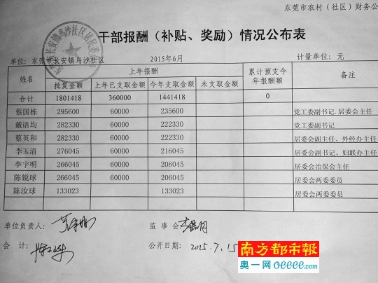 曾排入東莞社區前三甲的中堂鎮潢涌村,公示的干部待遇也比較可觀,人均年薪達到25萬多元。