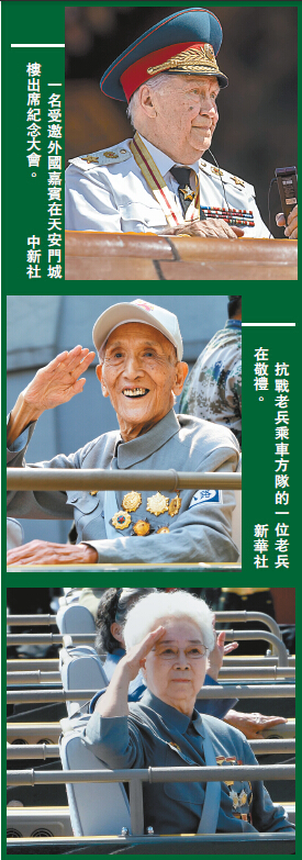 蘇聯紅軍、美國飛虎隊等老兵和子女代表也前來參閱。