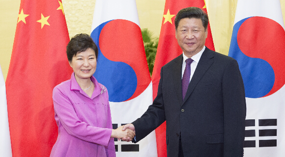 9月2日,国家主席习近平在北京人民大会堂会见韩国总统朴槿惠。 新华社