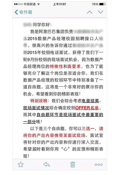 阿里巴巴對像張穎這樣中止面試的求職者都是電話道歉并且會為他們一份禮物。