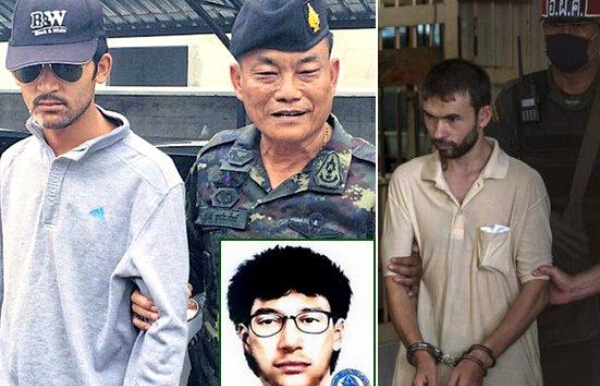 泰國警方已抓獲的兩名爆炸案嫌疑人,及黃衣人照片。