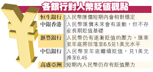 渣打香港亞洲區高級經濟師劉健恒預料,受美國年底加息消息的影響,美元會繼續走強,人民幣或再出現輕微貶值。他預測,人民幣對美元匯價在年底前會下跌至每1美元兌人民幣為6.50元,2016年的中間價會回升至6.35元。雖然近期人民幣一次性貶值,不足以提升出口競爭力,但由於人民銀行自去年11月開始已減息5次及降準3次,寬松政策將漸見成效,年底前,零售、固定資產投資及工業產出將出現回穩及輕微反彈的情況。因而他強調,人民幣大幅貶值的可能性較低。