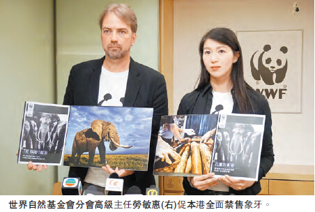 世界自然基金會香港分會環境保護總監魏啟宏稱,現時非洲大象盜獵情況嚴重,手法更相當殘忍,冀本港能跟隨外地做法,禁售象牙。他指出,獵人會為了取得原整的象牙而將大象「斬首」,令人慘不忍睹。現時中、美等多國已全面取締象牙貿易,他認為現時禁售象牙是大勢所趨,世界自然基金會日后亦會收集簽名,冀政府能制訂方案及時間表,盡快停止本港象牙加工和貿易。