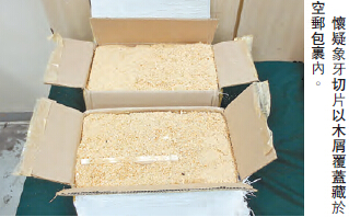 海關發言人昨日稱,本月6日,海關人員在進行清關工作時,以X光檢查2個從津巴布韋經荷蘭阿姆斯特丹進口香港、報稱「裝飾磁磚」的空運郵包時,發現可疑影像,打開郵包后,發現以木屑覆蓋的懷疑象牙切片。
