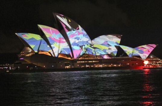 5月22日晚,澳大利亞悉尼歌劇院上演燈光秀。
