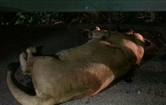 9月7日22時許,一輛河南籍大貨車行駛在蚌寧高速公路上,駕駛員周師傅正準備到前方2公里左右的嘉山服務區休息一下。突然,高速公路行車道上躥出一個黑影,“嘭”的一聲,跟車頭撞了一下。周師傅急剎車后停了下來,就在他準備下車時,發現這個黑影站了起來,在車燈的照亮下,周師傅嚇了一大跳,竟然是頭獅子!獅子左腿可能被撞傷了,但仍一瘸一拐地朝前走。驚出一身冷汗的周師傅不敢下車了,趕緊拿起手機向高速路政報警。